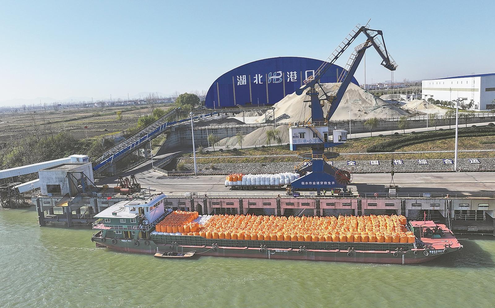 11月25日,襄阳小河港,运输船正在装载农资,准备发往浙江。襄阳小河港是汉江流域规划建设的最大港口。目前,我市生产的各类农产品通过港口水运销往全国各地,支撑了国家的农业生产。 全媒体记者 安福斌 宋敏 通讯员 李勤 摄