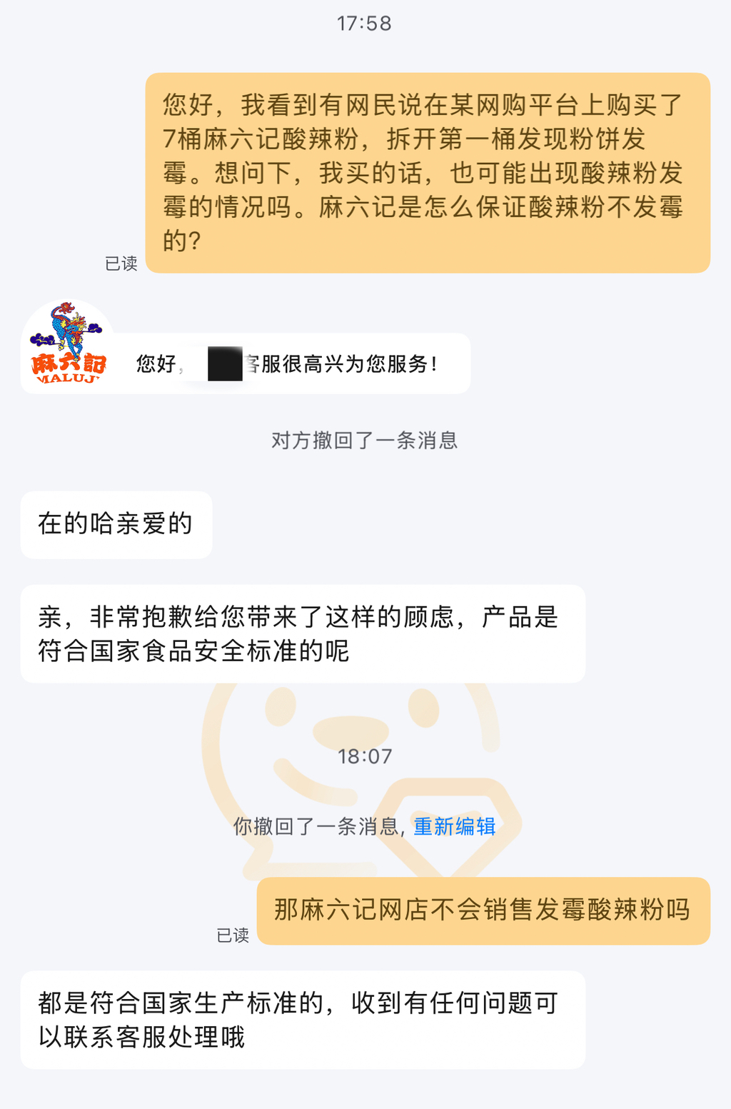 9月28日,中国新闻服务(Reporter Wu Jiju)最近报道说,网民在社交平台上发布了一个视频,称他在在线购物平台上购买了7桶Ma Liuji Hot and Sour -Sour。他打开了第一个水桶,发现了带有模具的粉末。今年7月,有一份报告称,消费者购买了发霉的Maliji Hot and Sour面条。 OEM公司Bai Jia Akuan道歉并发表了提醒声明,品牌公司Maliji也发表了一份声明,道歉。 9月28日,记者询问特定的在线Maluji商店作为消费者,其出售的炎热和酸面是否会很苛刻。商店客户服务说,该产品符合国家食品安全标准,并“如果您有任何疑问,可以联系客户服务以处理它。”图片显示,Maluji品牌成立于2020年及其创始人Wang Xiaofei。马利吉(Ma Liuji)的网站表明,马利吉(Ma Liuji)是北京的总部UDES两个主要部门:零售和物理部门;它创建了各种炎热和酸味的产品,例如热和酸面和Mao Xuewang。其中,炎热和酸面系列的总销售量超过1.7亿桶。 Tianyan Check网站显示,“北京Maliuji”企业集团中有42家业务,主要公司是北京Maliuji Catering Management Co,Ltd。负责编辑:Deng Minlu在发表演讲时请遵守服务协议的新闻答复